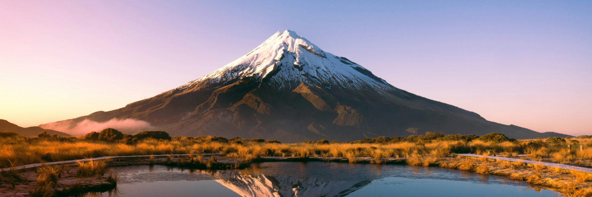 The track winds through some of the mountain’s most striking landscapes. Enjoy the magical stretch of moss-draped native bush with twisted kamahi trees, named the Goblin Forest or enjoy the Ahukawakawa Swamp which is a vast alpine wetland nestled between Mount Taranaki and the Pouākai Range, rich in birdlife and rare plants. And finally, the absolute highlight of this walk – the Pouākai Tarns. On a calm day, these alpine tarns reflect Mount Taranaki so perfectly it looks like a painting – one of the most iconic photo spots in New Zealand.
