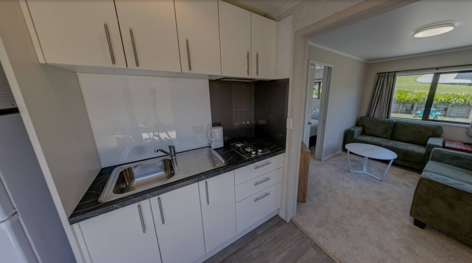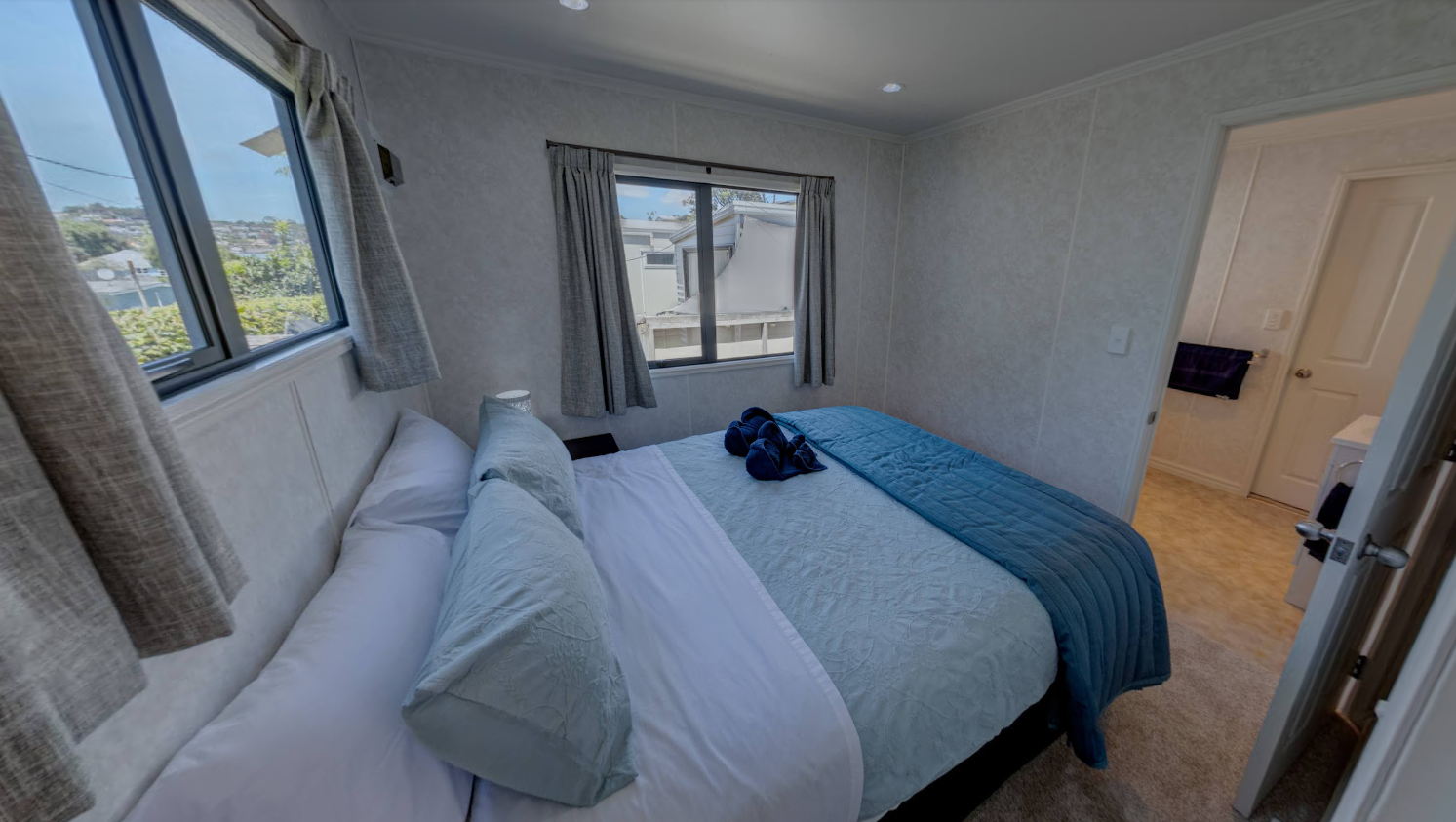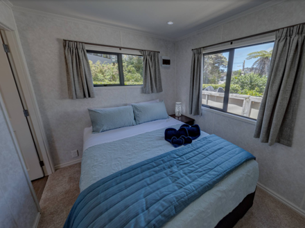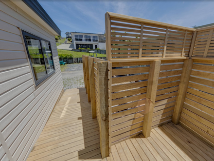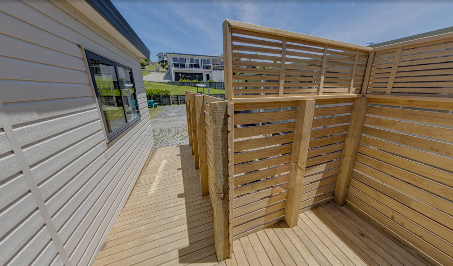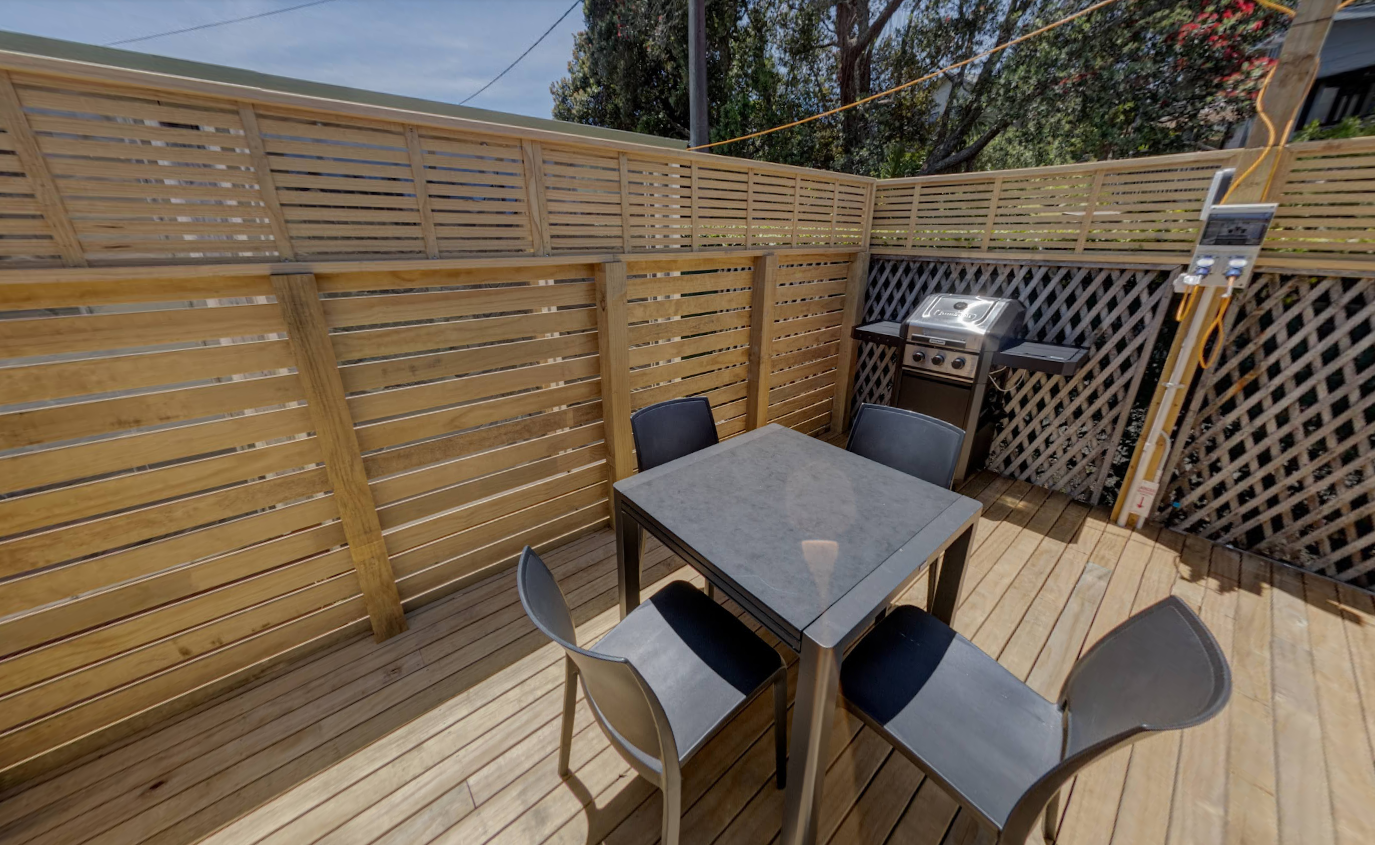 Our Fantail 2 Bedroom Unit has a small deck to enjoy the morning/afternoon sun and has 2 bedrooms both with queen beds. These include a fully equipped kitchen and bathroom facilities.