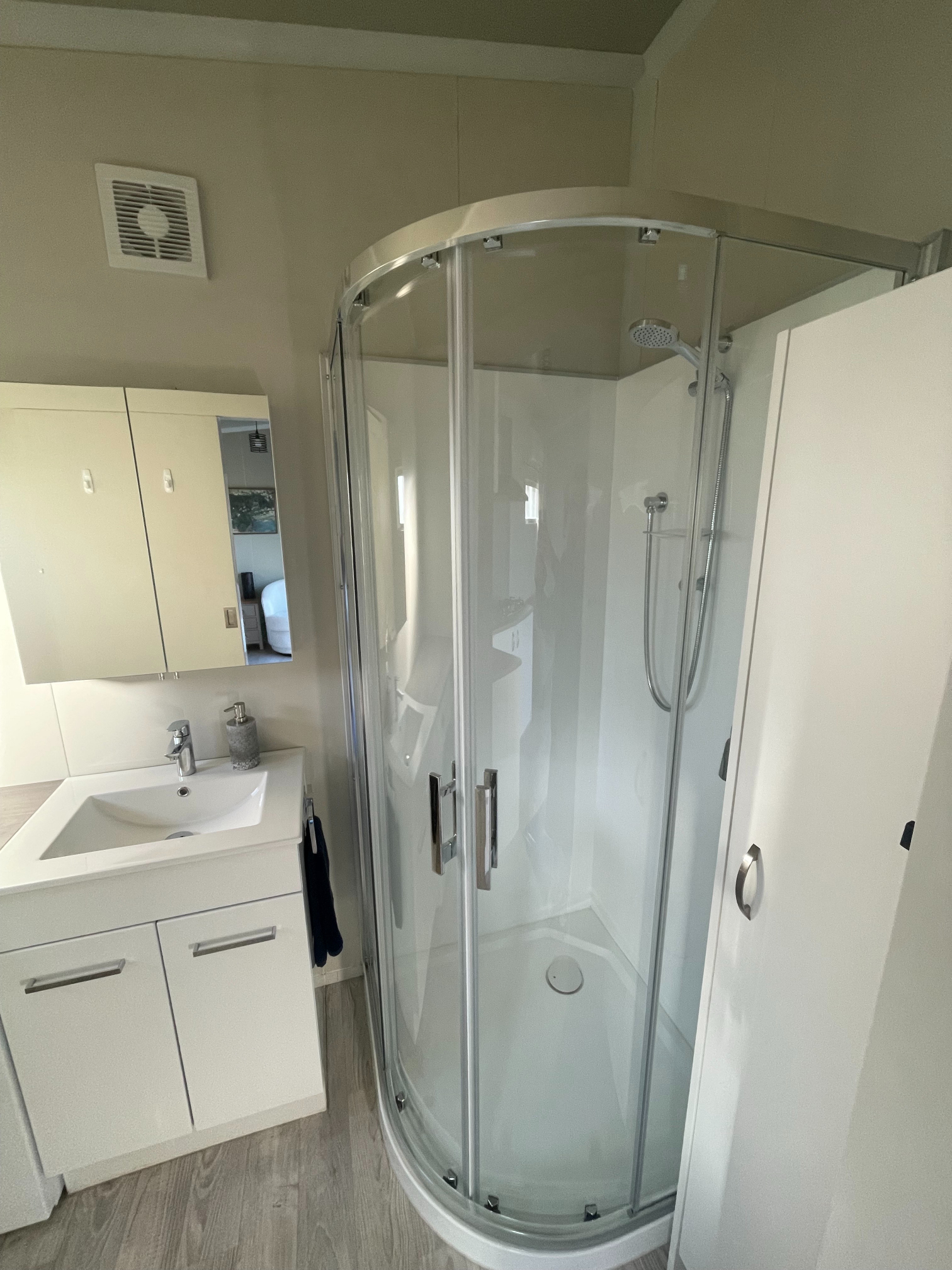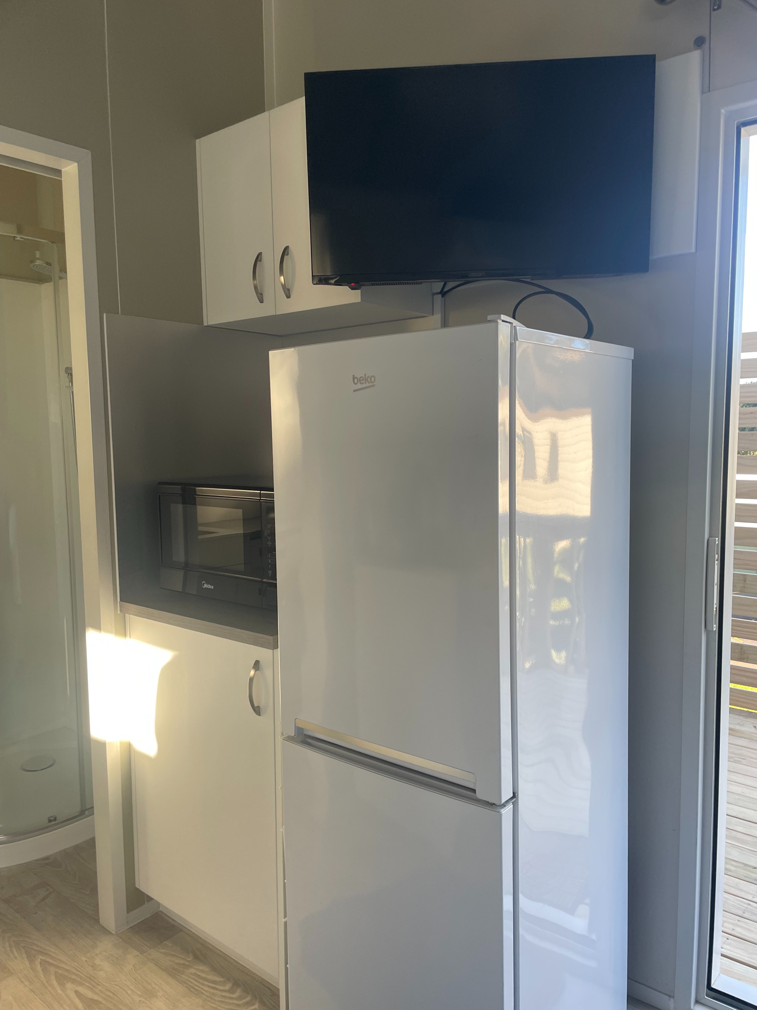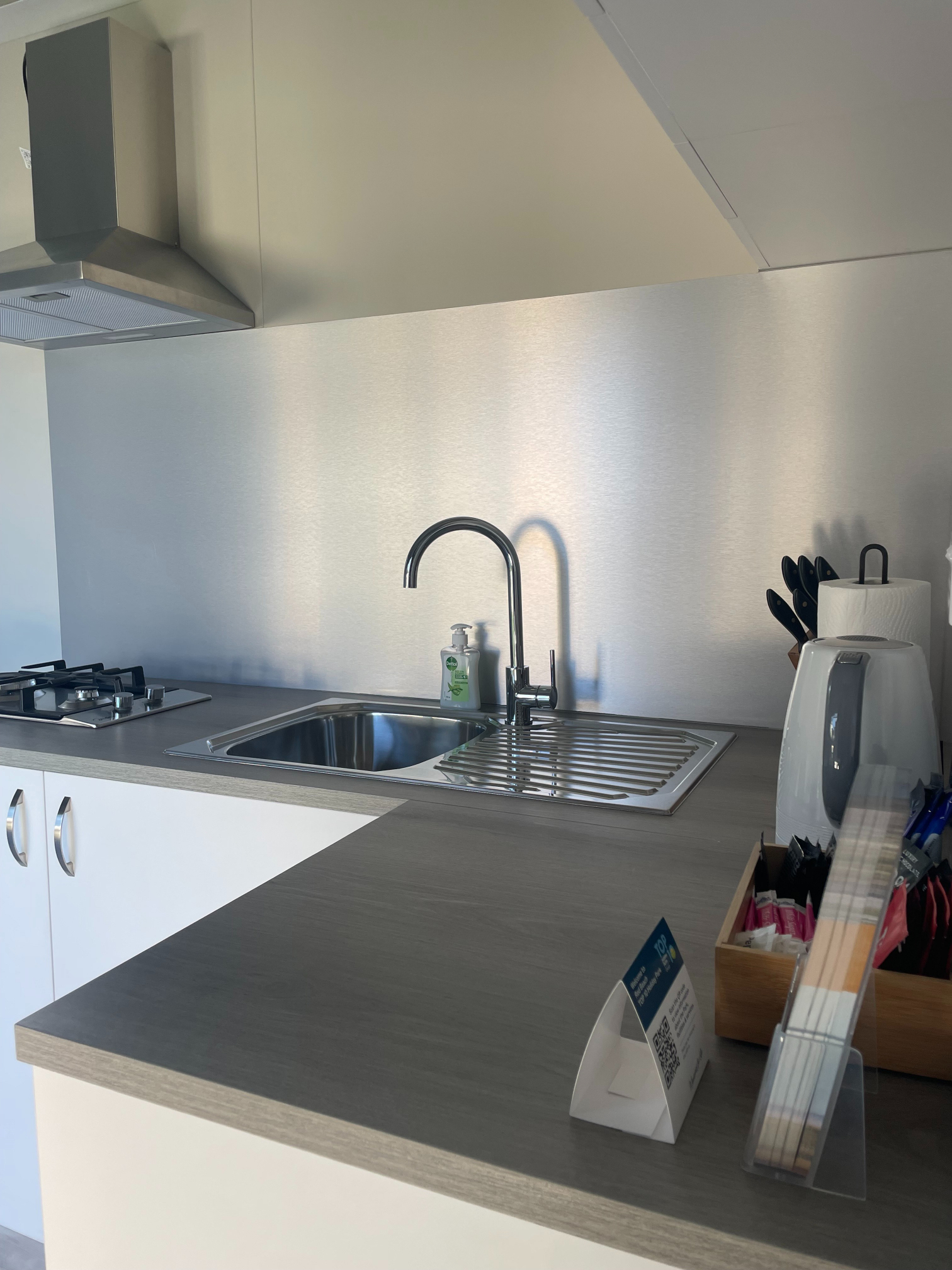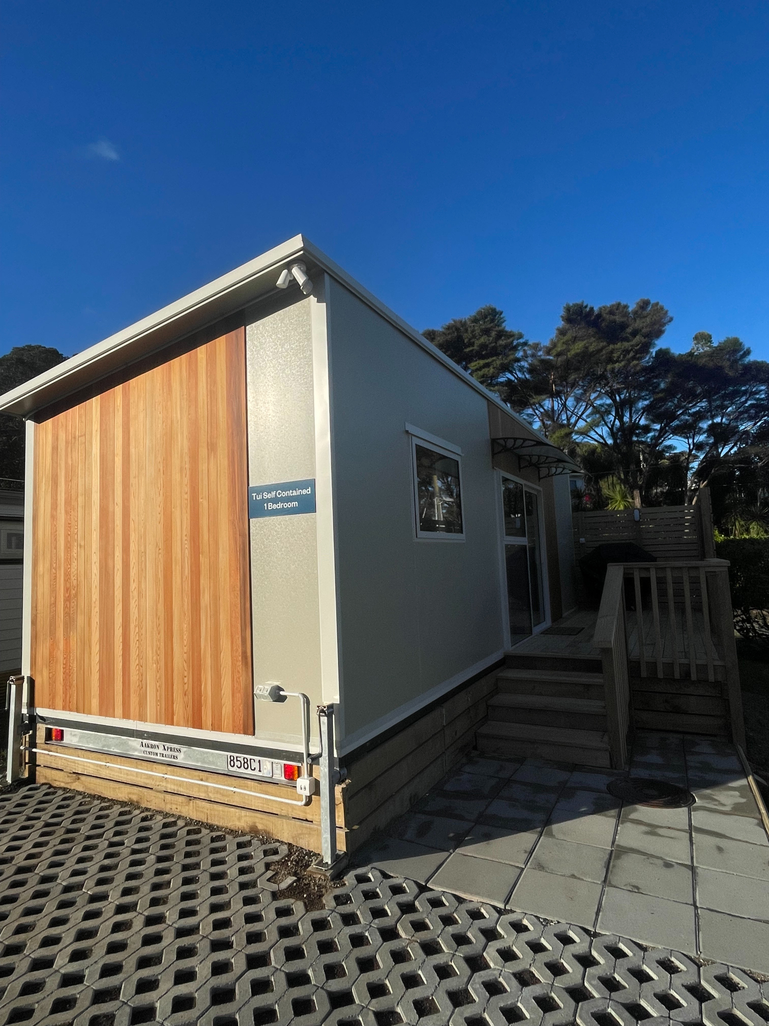 Our Tui Self-Contained Cabin has a small deck to enjoy the morning sun and has one bedroom, with a double bed. This includes a fully equipped kitchen with a washing machine, bathroom facilities & hairdryer. All bedding and towels are supplied. In the comfortable lounge area, there is a flat screen television with Sky TV and air conditioning for your comfort. The unit is serviced daily and has a non-smoking policy inside the unit. Smoking is only allowed in the dedicated smoking zones in the park.