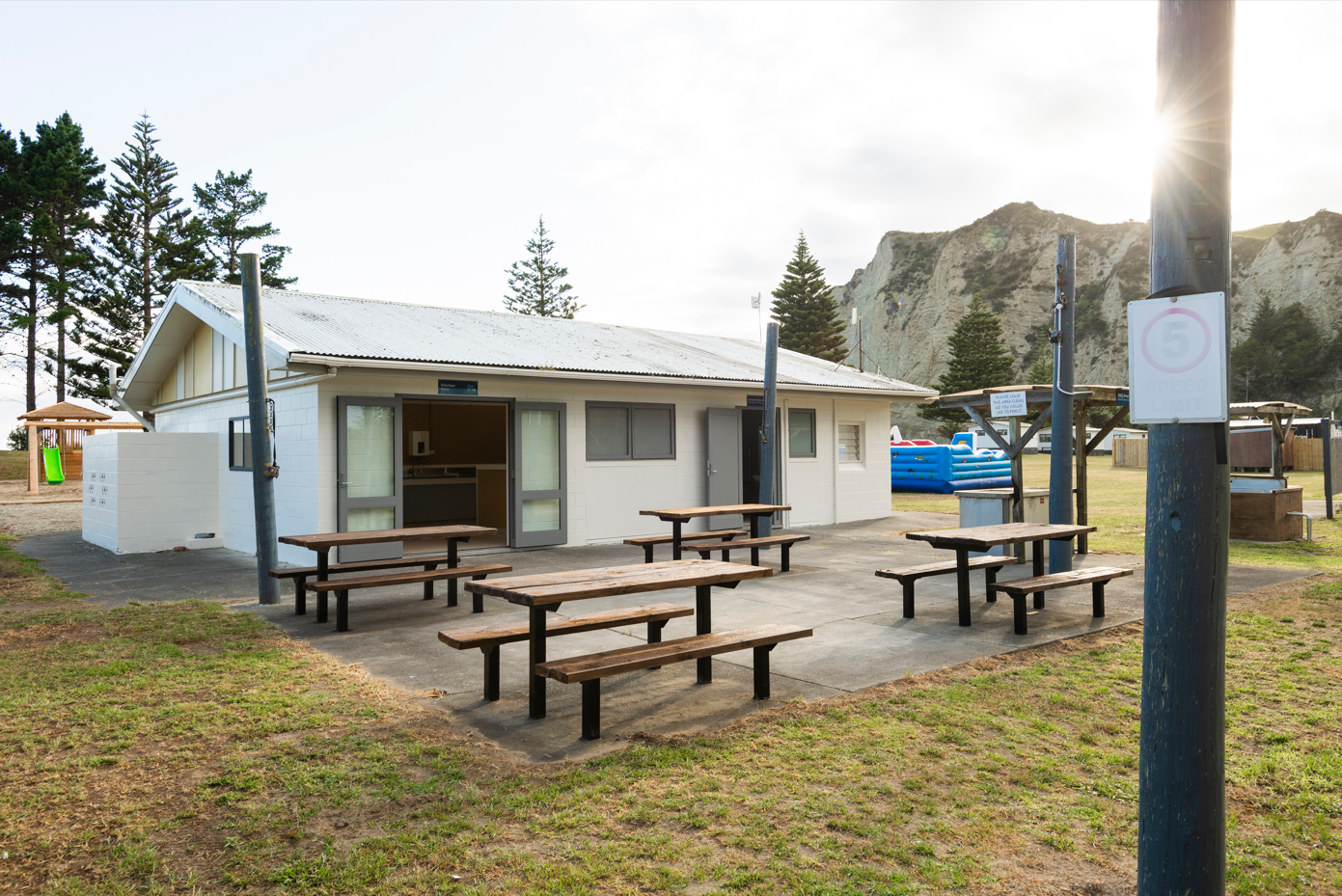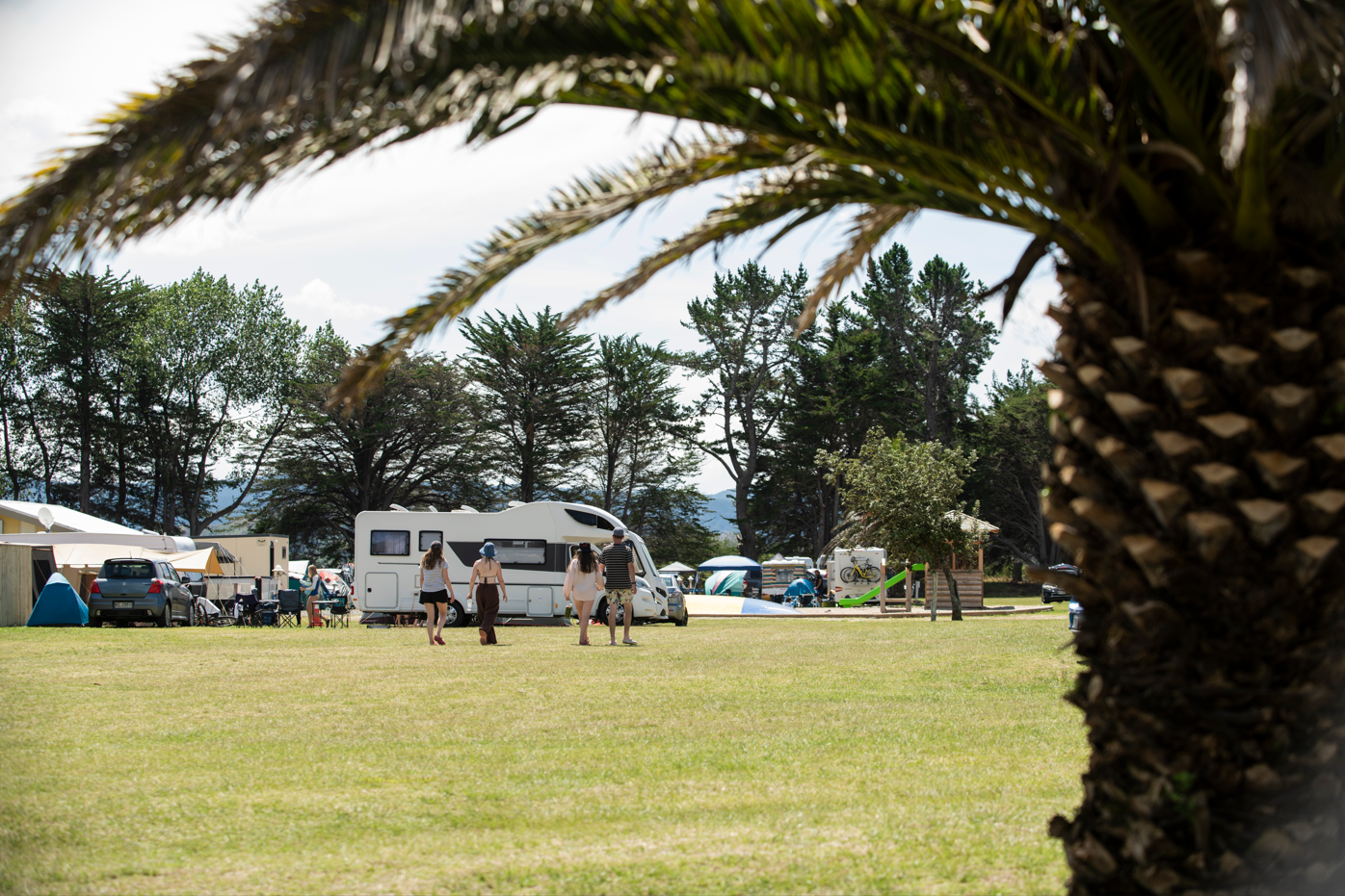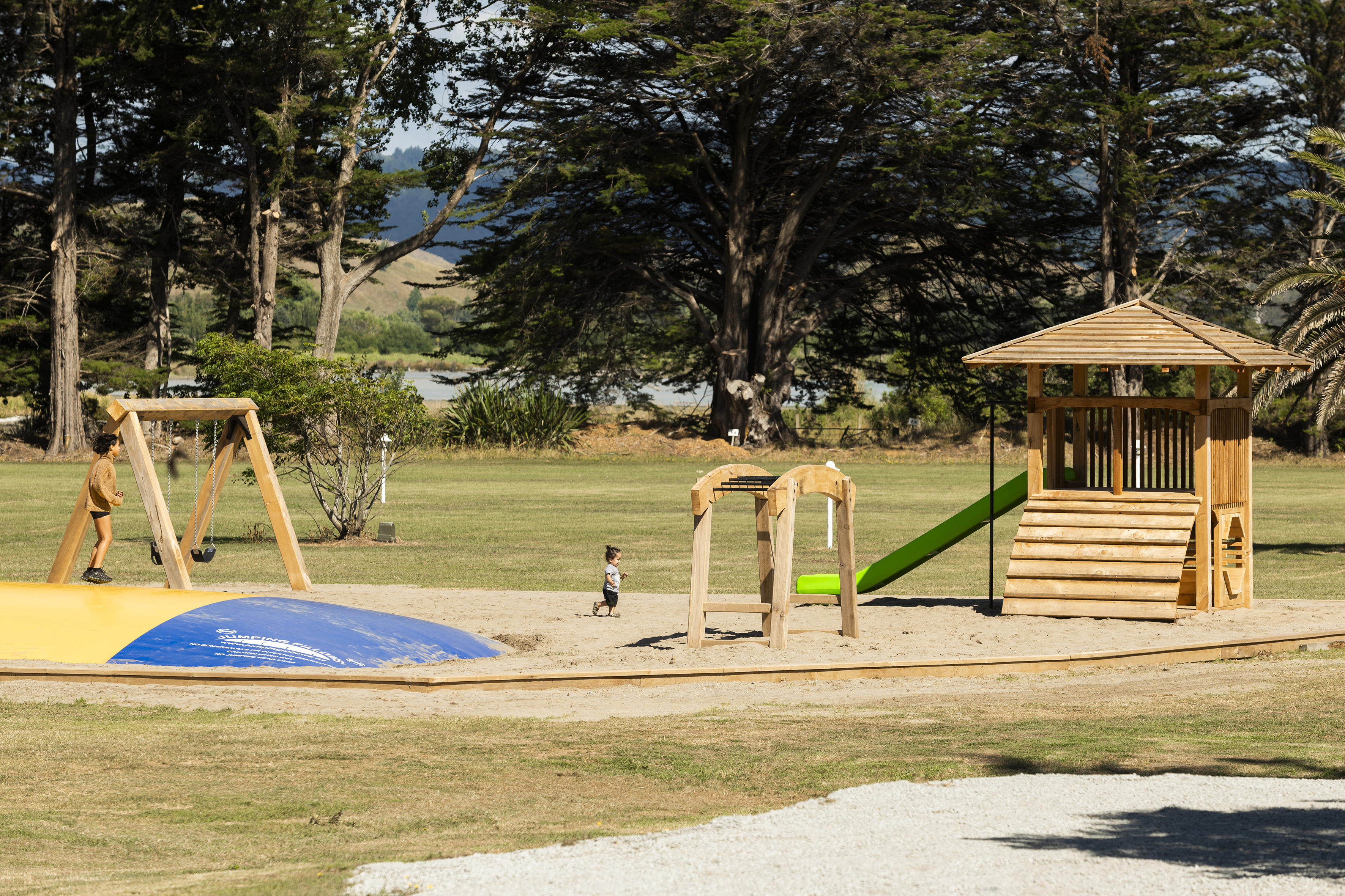 These Sites are set on grassy areas within easy reach of all the Park’s shared amenities, including a communal kitchen, bathroom, laundry, BBQ area, playground, jumping pillow and trampolines.