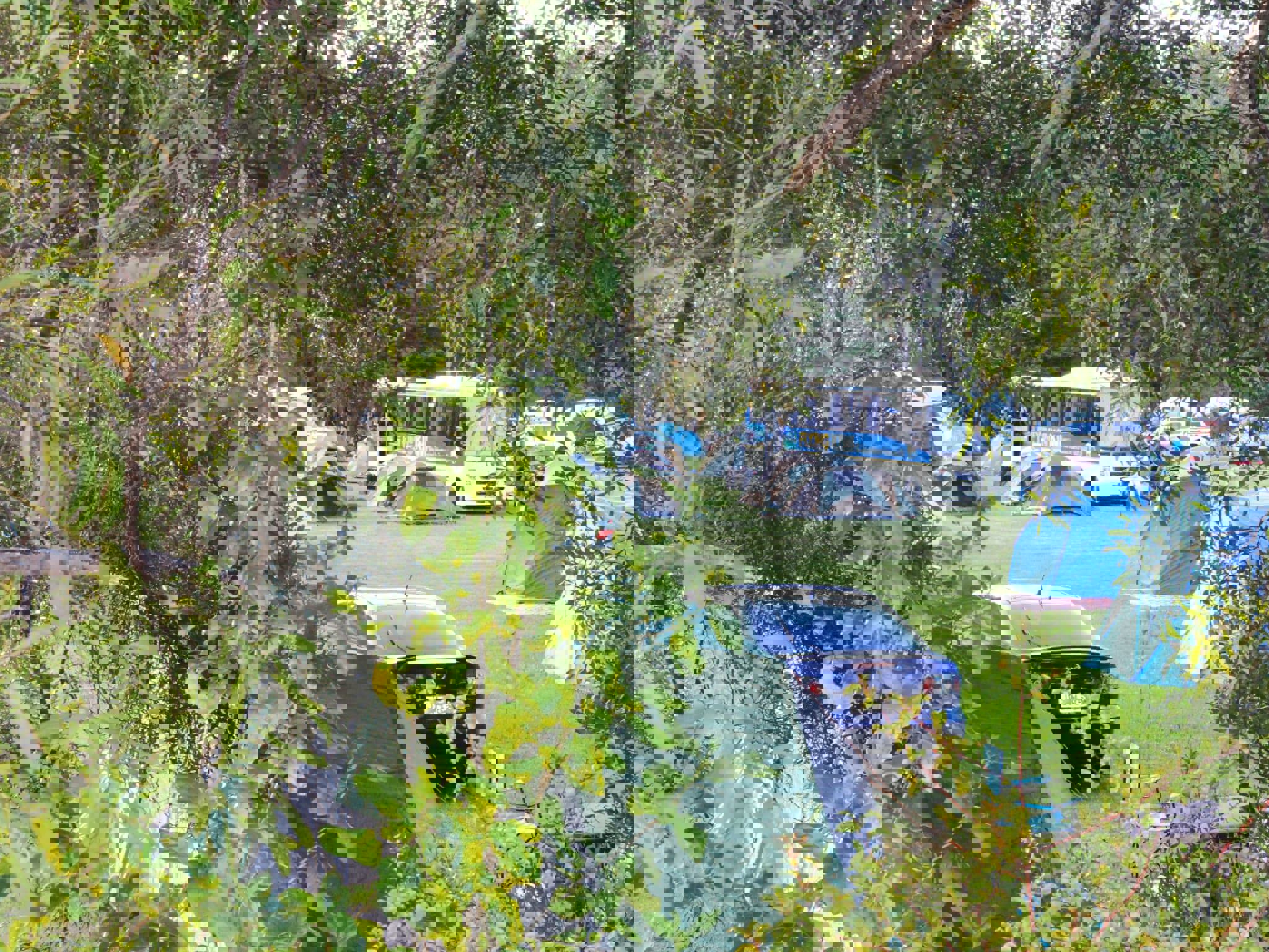 The Outback is a large flat paddock where you can spread yourselves out and sites are not designated. This is specifically a non-powered basic area great for tents of all sizes, as well as vans or motorhomes. This area is suitable for large families or groups travelling together, so there's plenty of room to spread out the camping gear, bikes, gas BBQs - even the boat!
