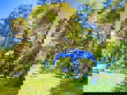 Find your own secluded campsite in amongst the grassy areas of our mature Cabbage trees. The facilities block, shop and fish & chips are 200m metres away. Campsites are not designated. There is no Wi-Fi access in the Cabbage area.