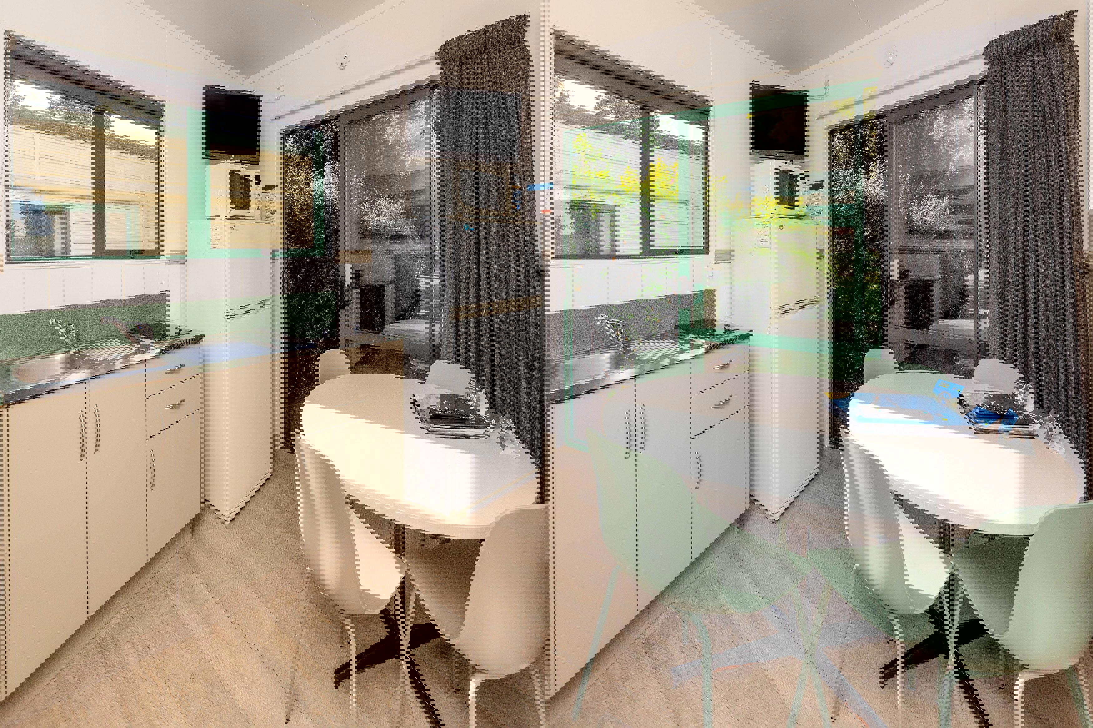 Pool, play and sun? Our kitchen cabins are what you are looking for.