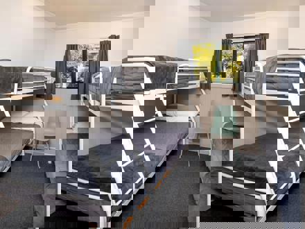 Bedding configuration consists of 1x double duo bunk bed and 1 x single bunk beds. There is no bathroom in this unit, use of the shared bathroom facilities is required