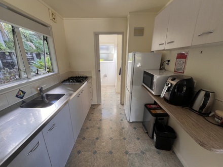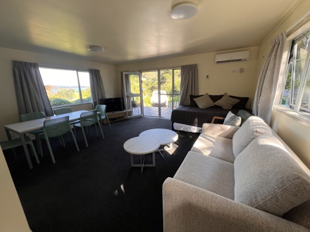Our One Bedroom Bayview Family Villa is located on the second tier of the park, high enough to see beautiful views of Kororāreka bay. Fitted with a full bathroom and kitchen facilities, perfect for the family for your own space. The villa has a Queen bed in the bedroom with a pull out sofa bed in the living room.