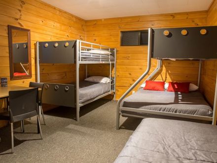 The Standard Cabin offers a comfortable and practical stay for small families or groups. It accommodates up to five guests with one queen bed, one single bed, and a set of bunks, and includes essential furnishings for a cozy experience. Guests enjoy shared park amenities, as these cabins do not have private kitchen or bathroom facilities. Ideal for travelers seeking simplicity and affordability in a scenic holiday setting.