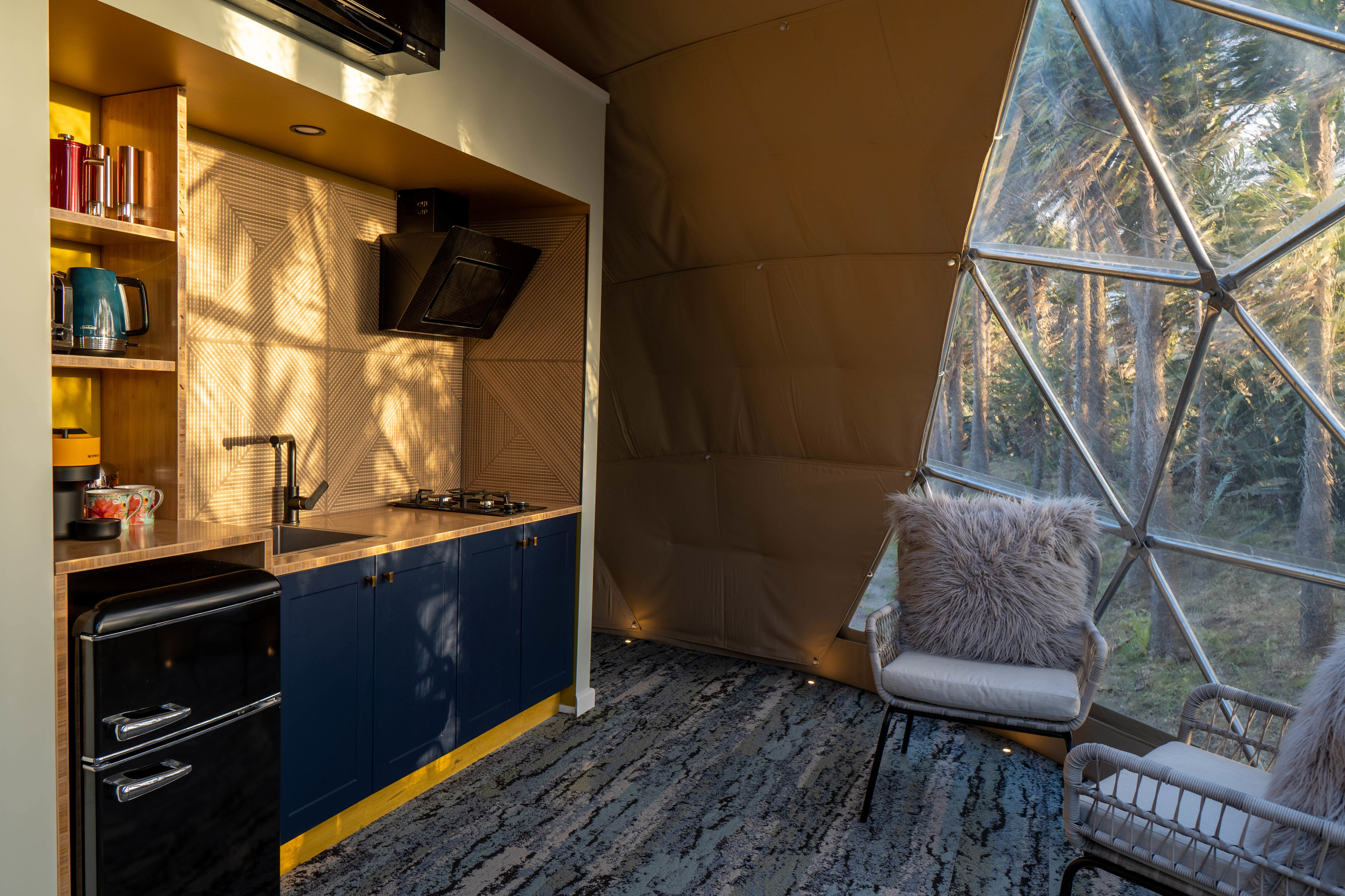These unique glamping spots are designed to give you an unforgettable coastal experience. Each dome is a cozy haven, complete with a smart kitchenette, a super comfy Queen-sized bed with a stunning sunset view, and all the essentials you could need. Coffee lovers,rejoice! We've got a Nespresso Vertuo machine for that perfect morning pick-me-up. Our coastal domes are fully self-contained, featuring a full ensuite bathroom, a dressing room, and a chill lounge and dining area. With airconditioning to keep you comfy no matter the weather, you'll feel right at home. We've even thrown in use of fluffy robes, slippers, and silk eye masks for that extra touch of luxury!
