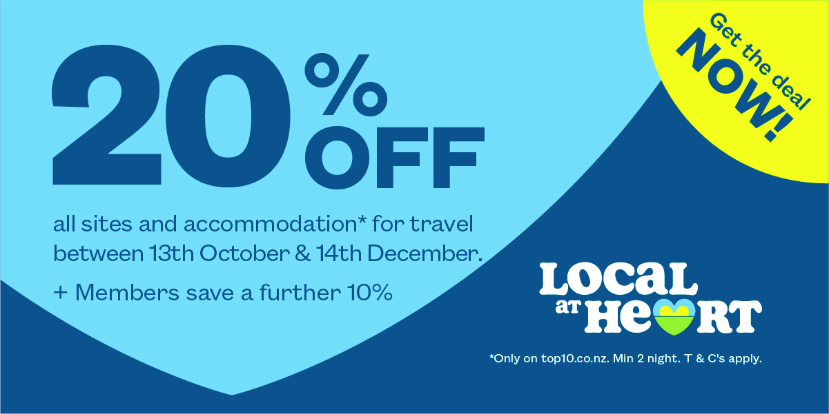 We're excited to share that most Parks are participating for the ENTIRE promotional period so go get your Spring booking locked in quick. Please note that this is only available on new bookings and must be booked on top10.co.nz.